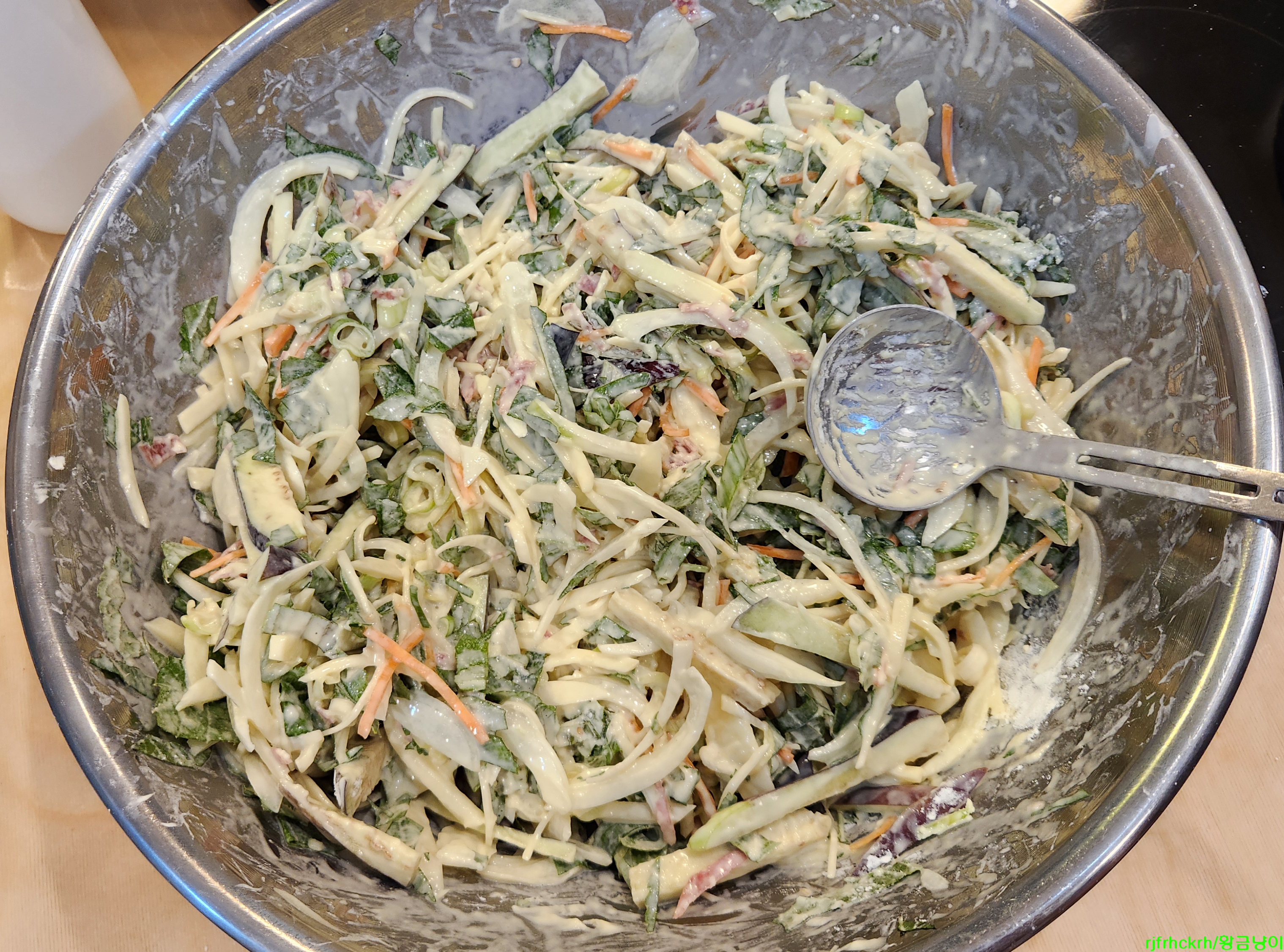 채썰어서 반죽해주기