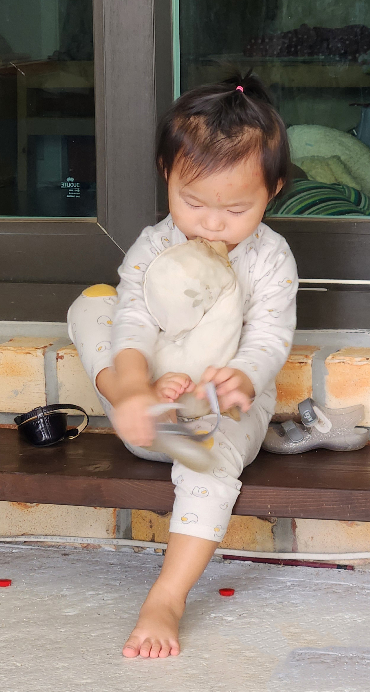 신발 혼자 막 신기 연습하고 있네요