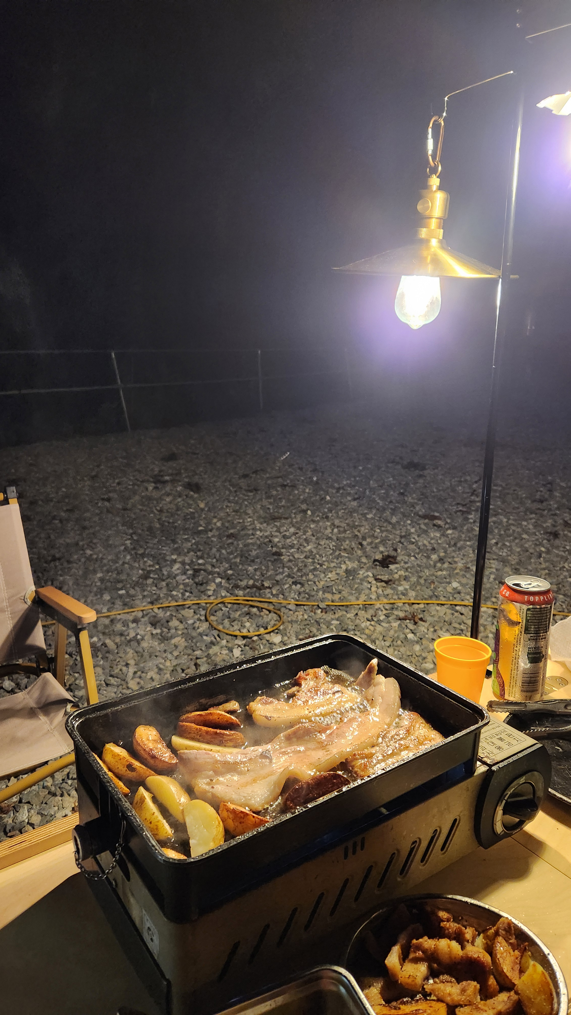 밤에 고기도 구워 먹었고