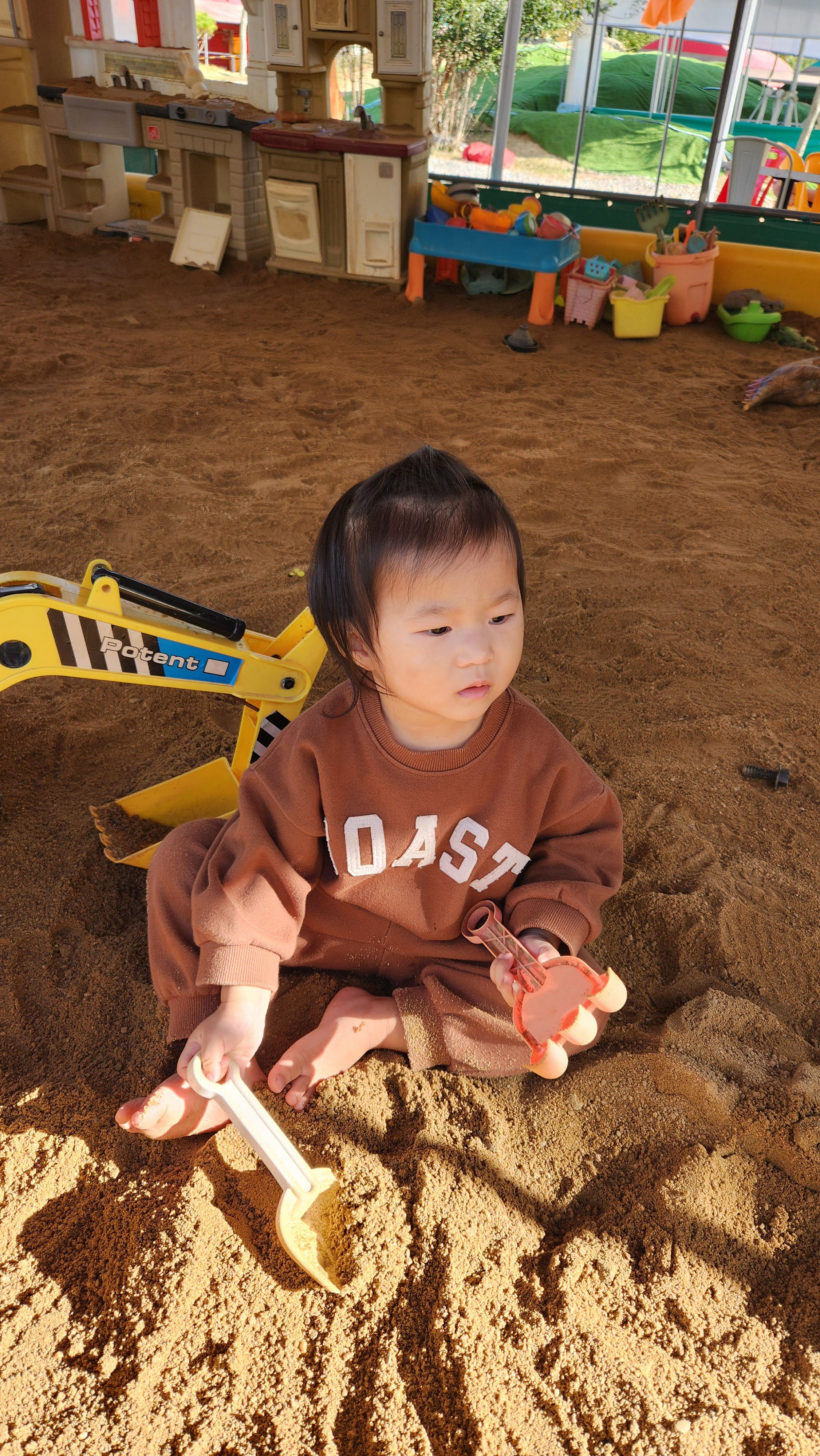 이런 모래장은 처음인 아기