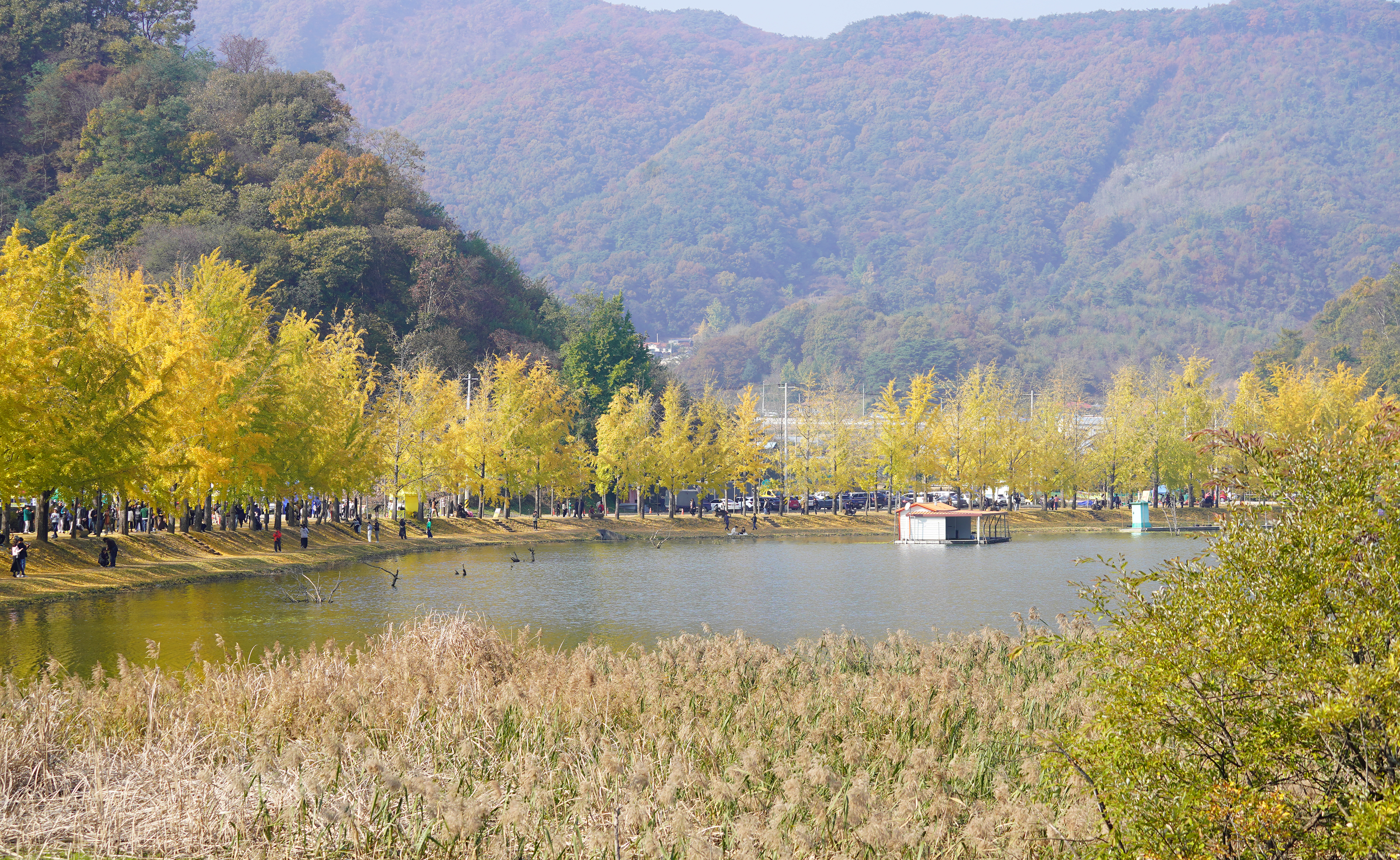 저수지 옆 은행나무길